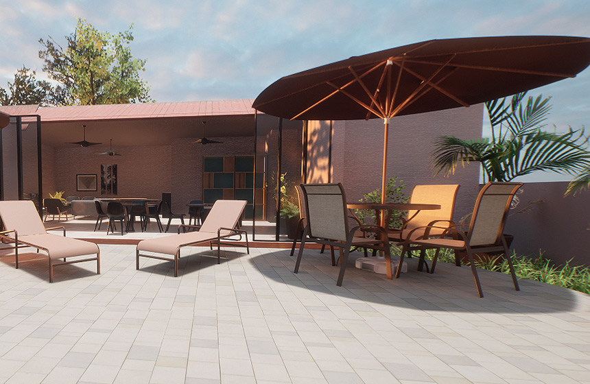 Conjunto de Mesa com 4 Cadeiras + 2 Espreguiçadeiras + Ombrelone